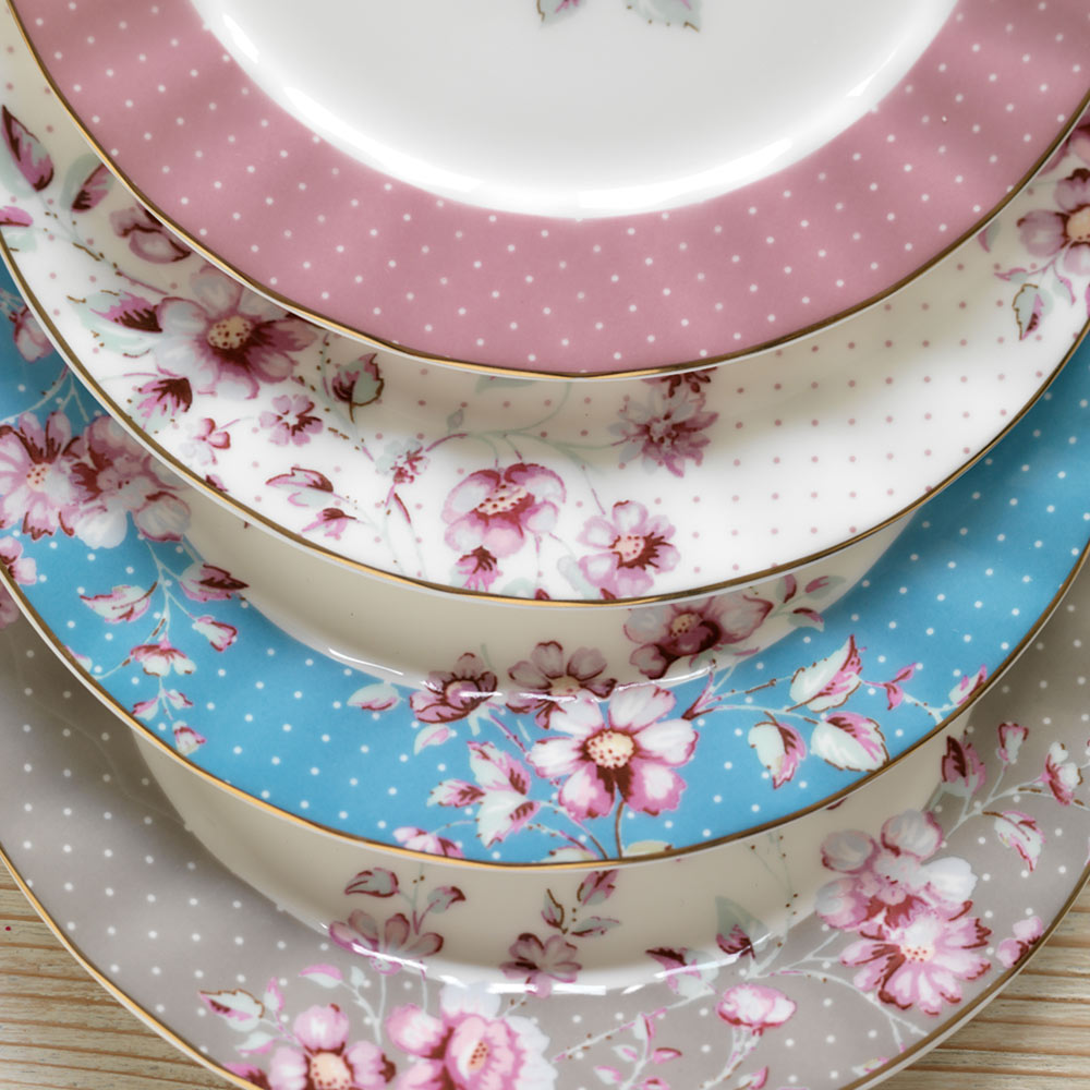 The addition of a vibrant teal to the ditsy floral collection this season adds a fresh touch to this beautiful vintage design. This pretty side plate with a band of colour and sprawling floral pattern is perfect for your afternoon tea parties and vintage styled dinner parties. Made from a lovely bone china, it looks great when mixed with the other three plates in the collection. Because of the special metallic gold details in this collection, this item cannot be used in the microwave, and we recommend handwashing to keep the gold as shiny and pretty as the day you bought them.
